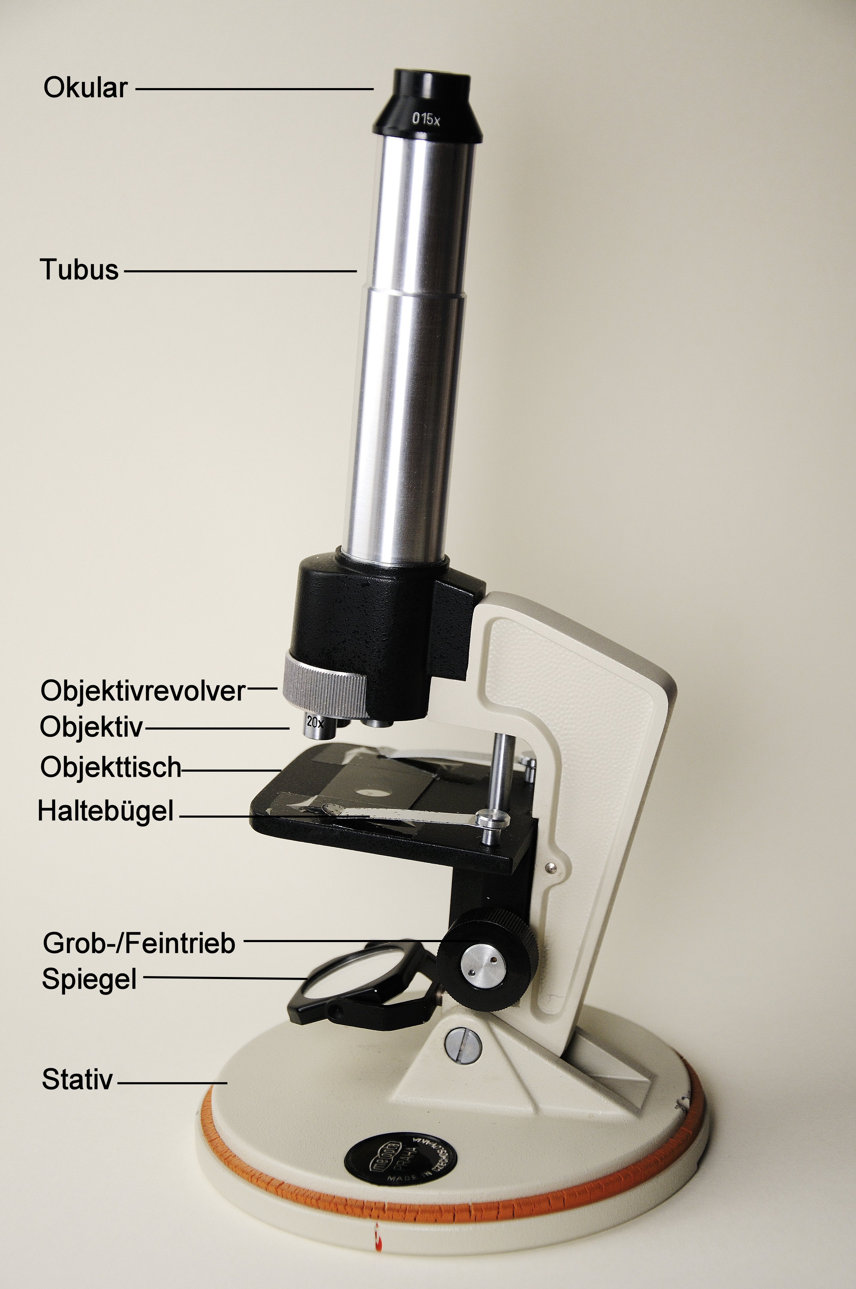 Das unten abgebildete Mikroskop ist ein tschechisches Schülermikroskop älterer Bauart der Firma MeOpta. Es hat noch einen Spiegel anstelle einer elektrischen Beleuchtung, wie es heute üblich ist.