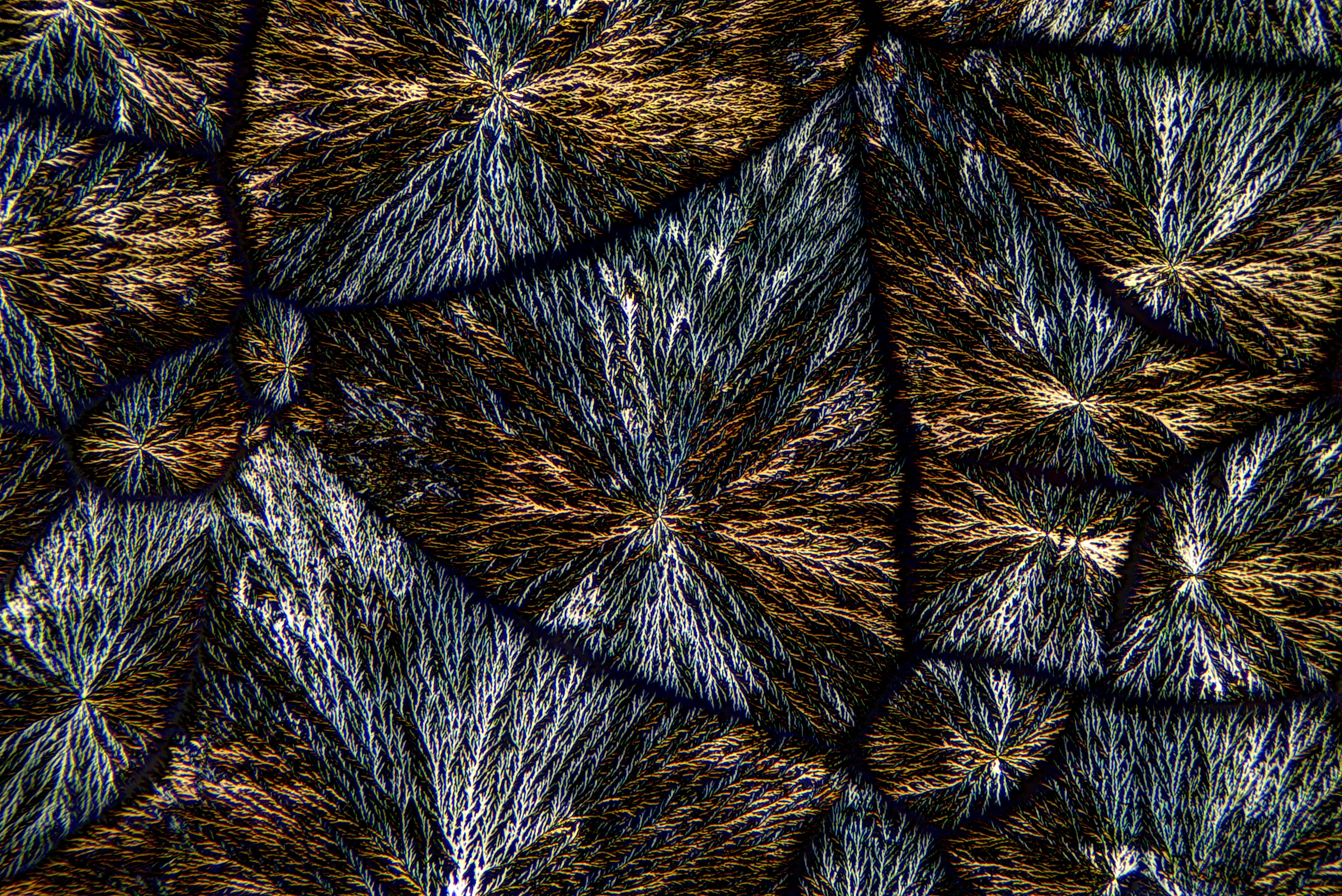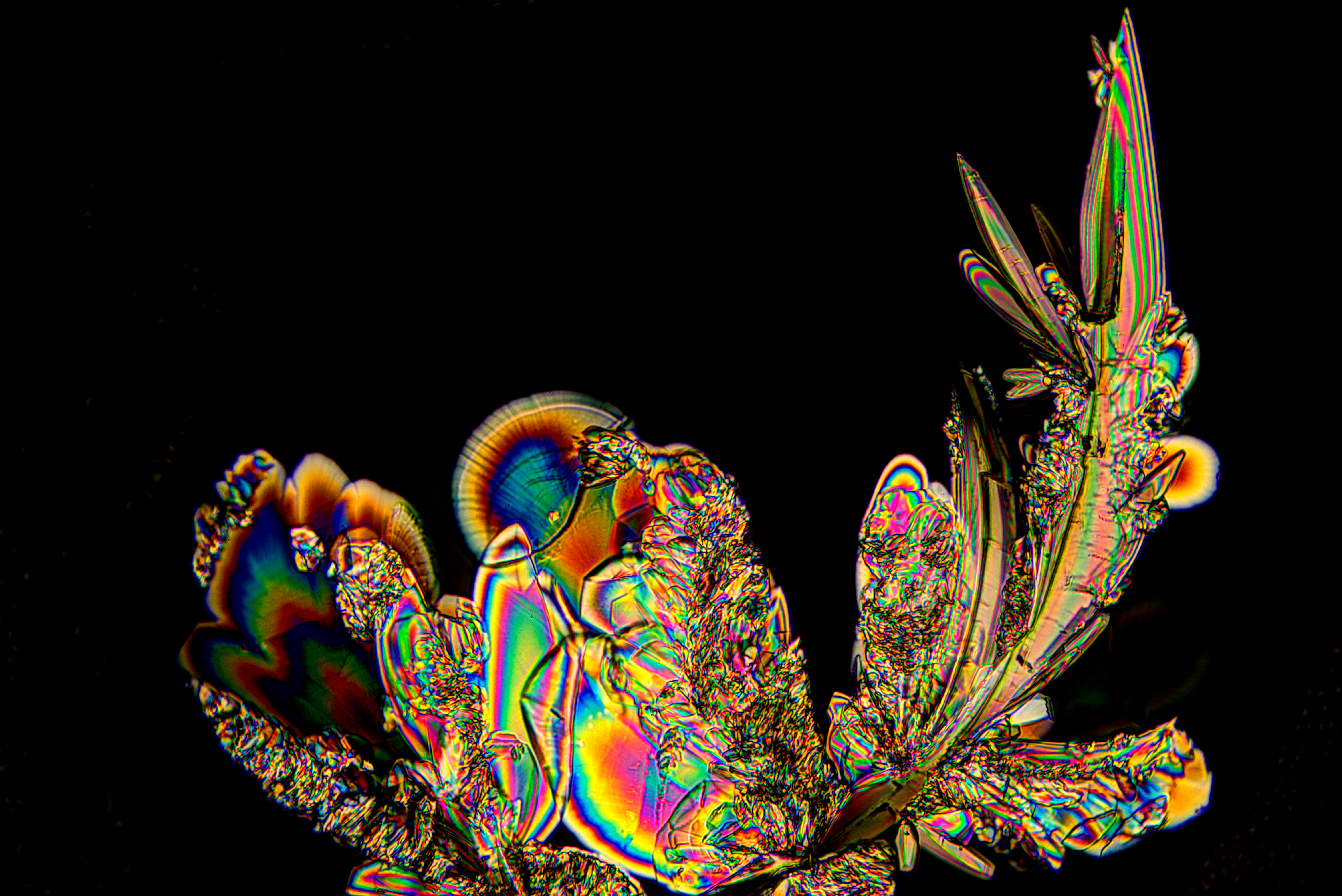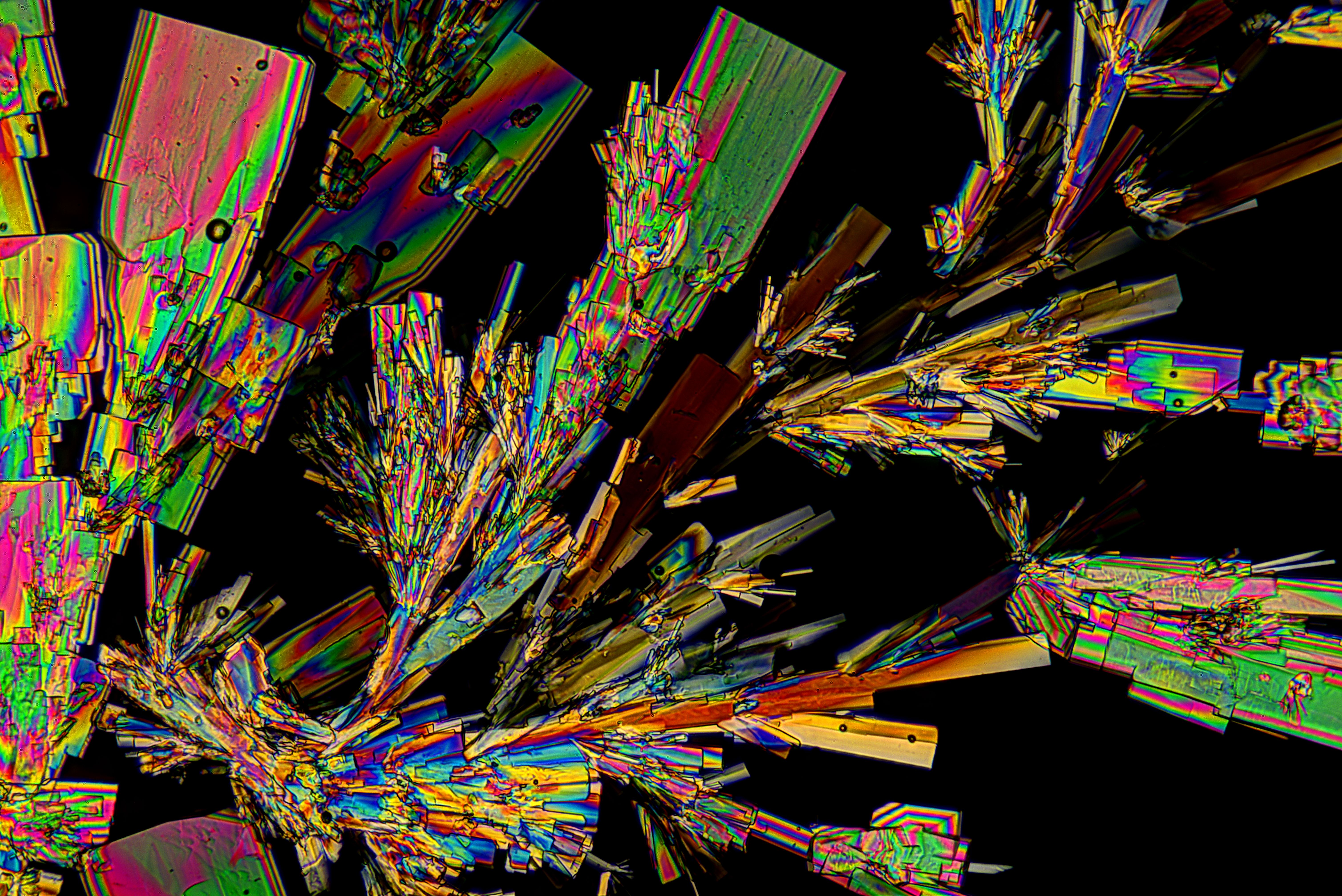 Mikrokristalle von Kupfersulfat im polarisierten Licht.