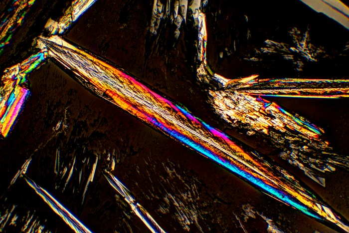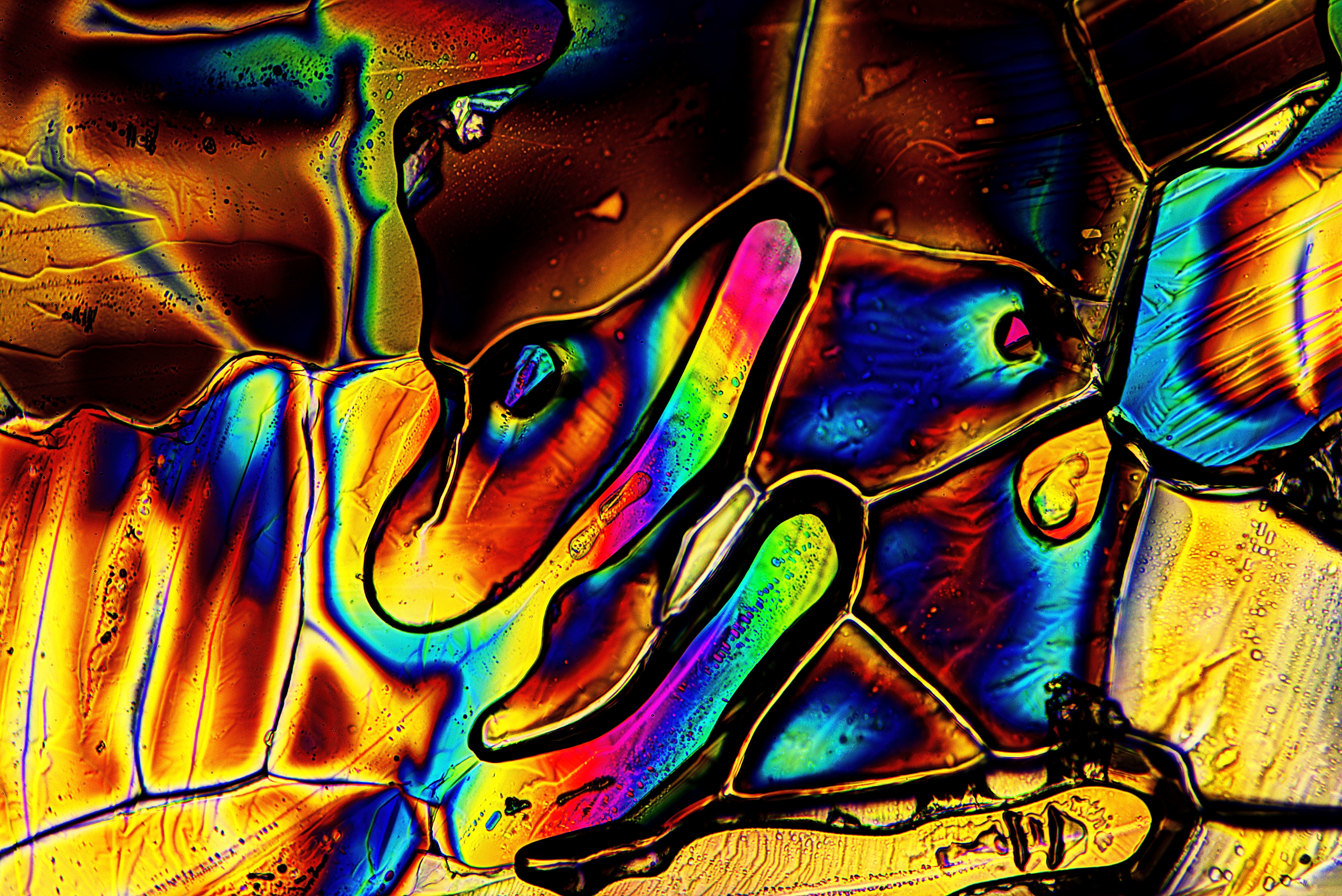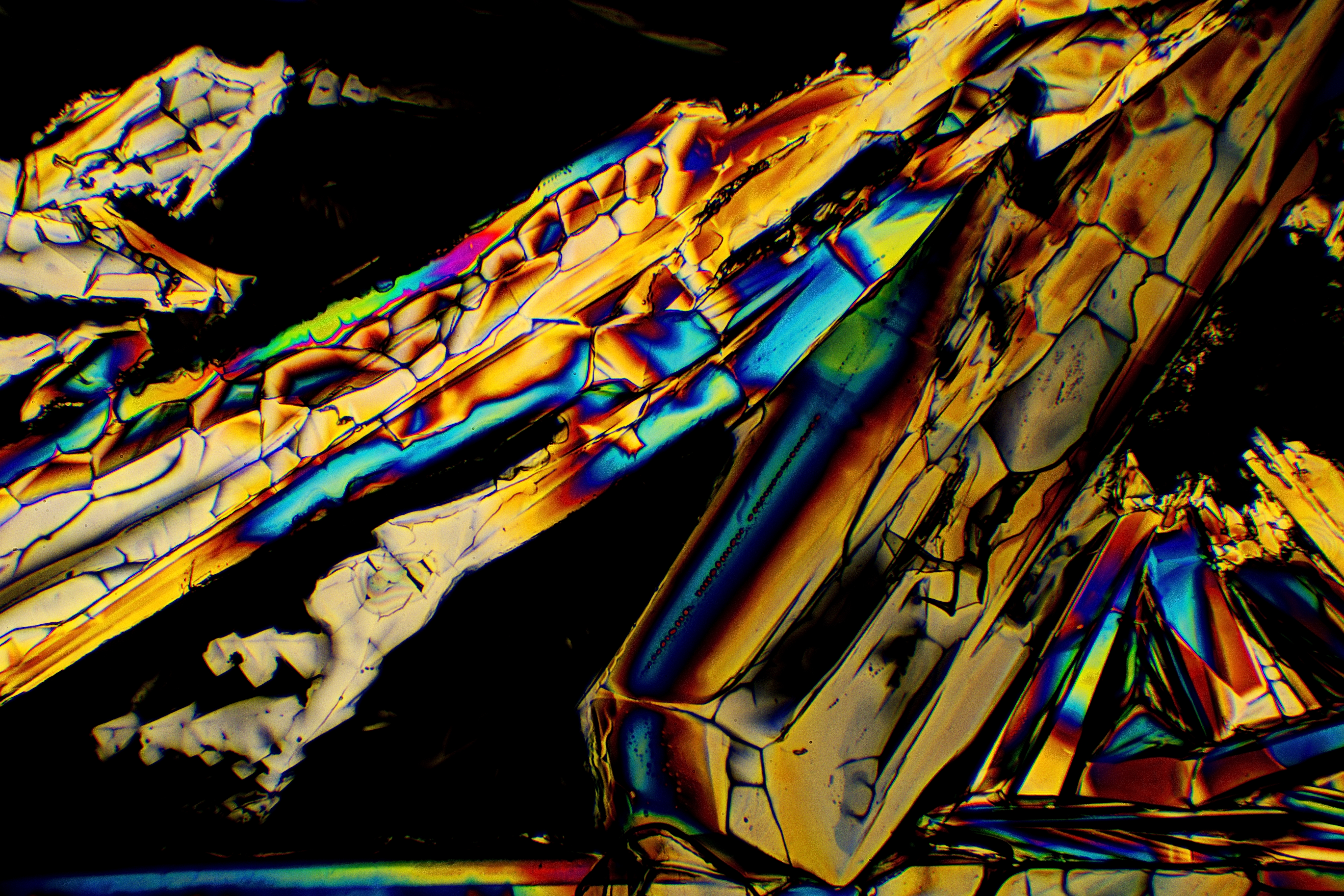 Es ist ja oft ein Problem, geeignete Substanzen für schöne Mikrofotos im polarisierten Licht zu beschaffen. In meinen letzten Blogbeiträgen habe ich einige leicht zu beschaffende anorganische Salze vorgestellt. Heute habe ich mir das Kupfersulfat vorgenommen, das für unsere Zwecke gut geeignet ist.