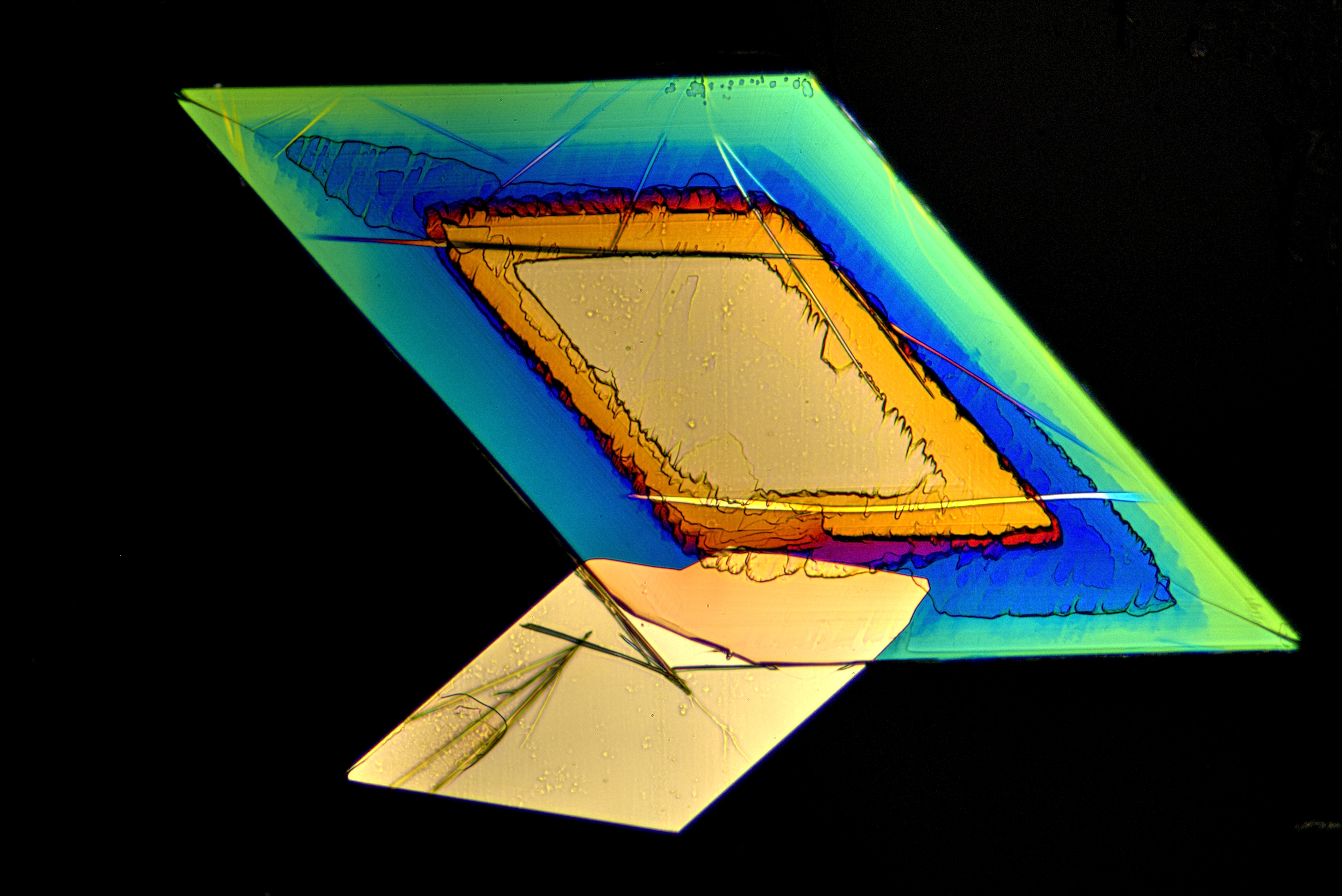 So liebe Freunde der Mikrokristalle, nach soviel Rechnerei jetzt noch einige Mikrofotos. Es ist immer noch Spargelzeit. Darum habe ich mit das Asparagin vorgenommen. Wer nicht nur an den schönen Farben der Kristalle interessiert ist, sondern auch an deren Formen, dem kann ich das Asparagin sehr ans Herz legen. Man erhält mit dieser Substanz häufig sehr schöne Einzelkristalle, wie die folgenden Bilder zeigen: